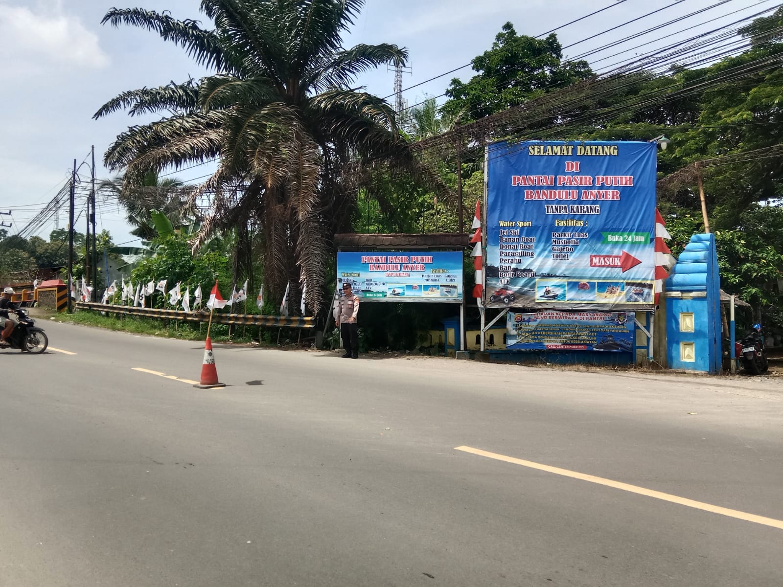 CILEGON – Personel Polres Cilegon melaksanakan pengaturan lalu lintas di ruas jalan wisata Anyer, tepatnya di depan kawasan wisata Pantai Pasir Putih Bandulu Anyer, pada akhir pekan. Kegiatan ini dilakukan untuk mengantisipasi kepadatan arus kendaraan yang meningkat seiring tingginya kunjungan wisatawan.Berdasarkan pantauan di lokasi, seorang personel kepolisian tampak berjaga di tepi jalan sambil mengatur...