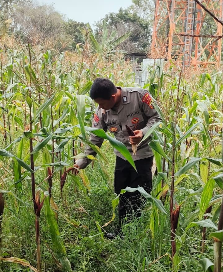 DUKUNG KETAHANAN PANGAN, BHABINKAMTIBMAS LAKUKAN PENGECEKAN TANAMAN JAGUNG BERSAMA MASYARAKAT