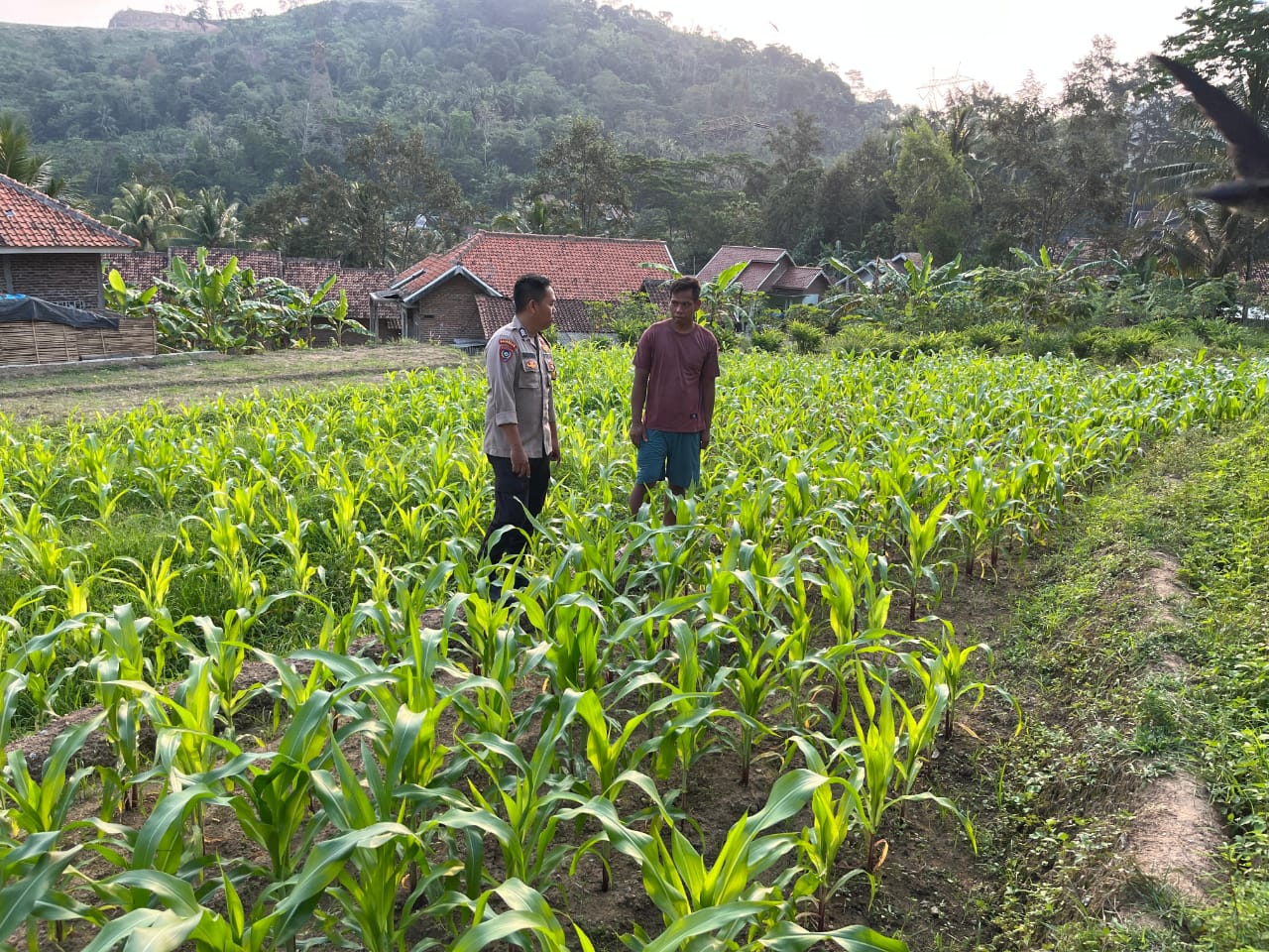 Pantau Perkembangan Tanaman Jagung bersama Petani, Brigadir Chaeruman dan Brigadir Bagus Polsek Bojonegara Turun Ke Ladang