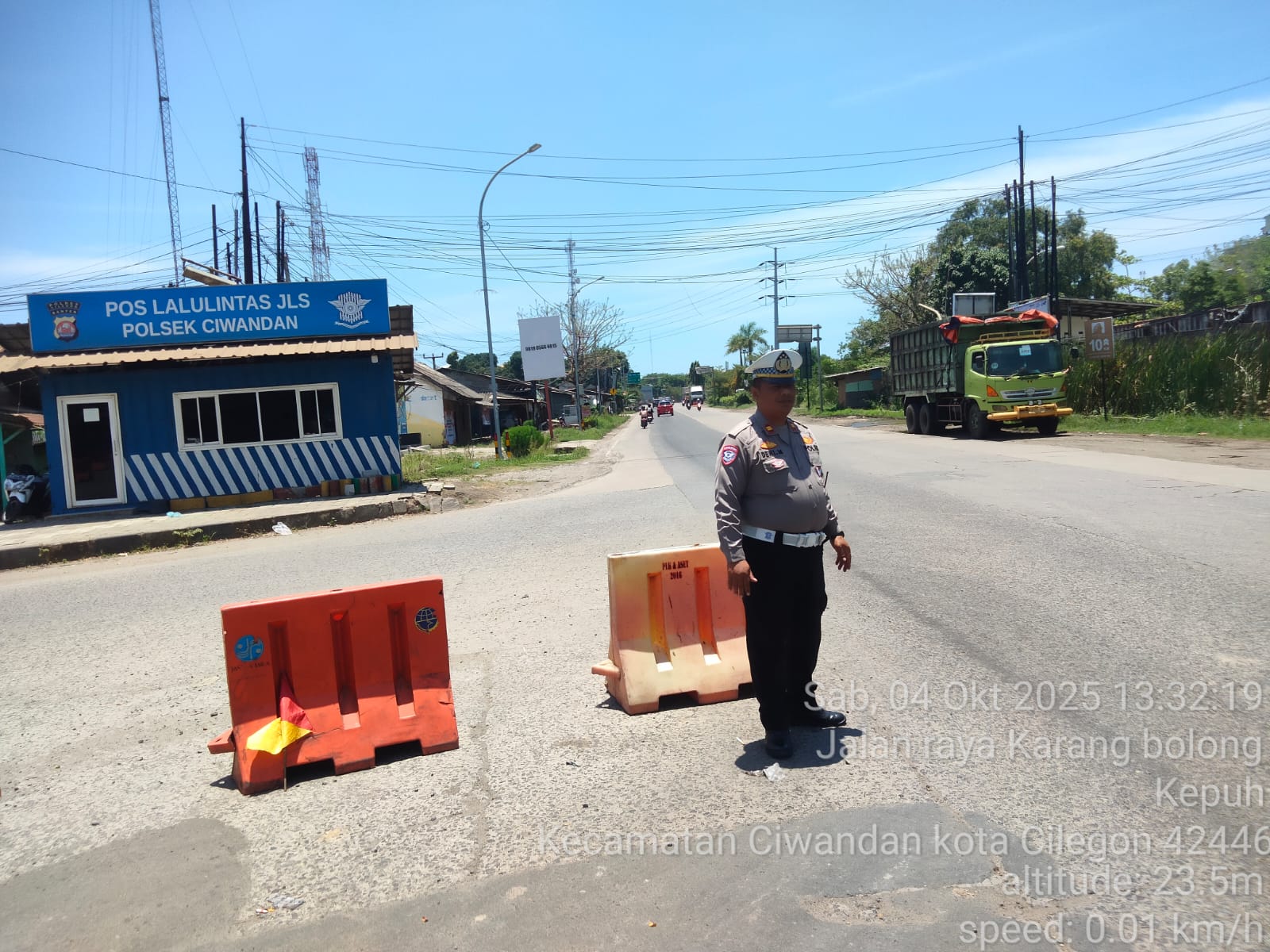 Cilegon - Pada Weekend kali ini Personil Unit Lantas Polsek Ciwandan Polres Cilegon Polda Banten melaksanakan pengaturan lalu lintas di Simpang JLS tepatnya di Pertigaan depan PT. Semen Indonesia Demi Kelancaran Arus Lalu-lintas Wisata, Sabtu (04/10/2025).