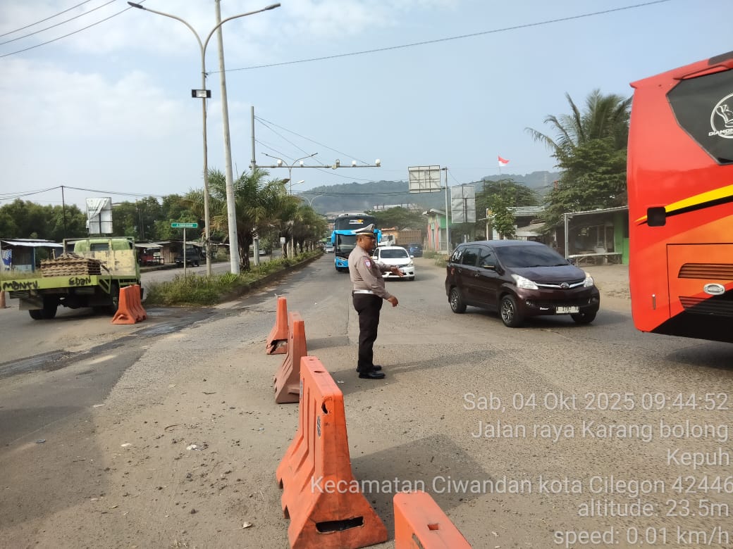 Cilegon - Pada Weekend kali ini Personil Unit Lantas Polsek Ciwandan Polres Cilegon Polda Banten melaksanakan pengaturan lalu lintas di Simpang JLS tepatnya di Pertigaan depan PT. Semen Indonesia Demi Kelancaran Arus Lalu-lintas Wisata, Sabtu (04/10/2025).
