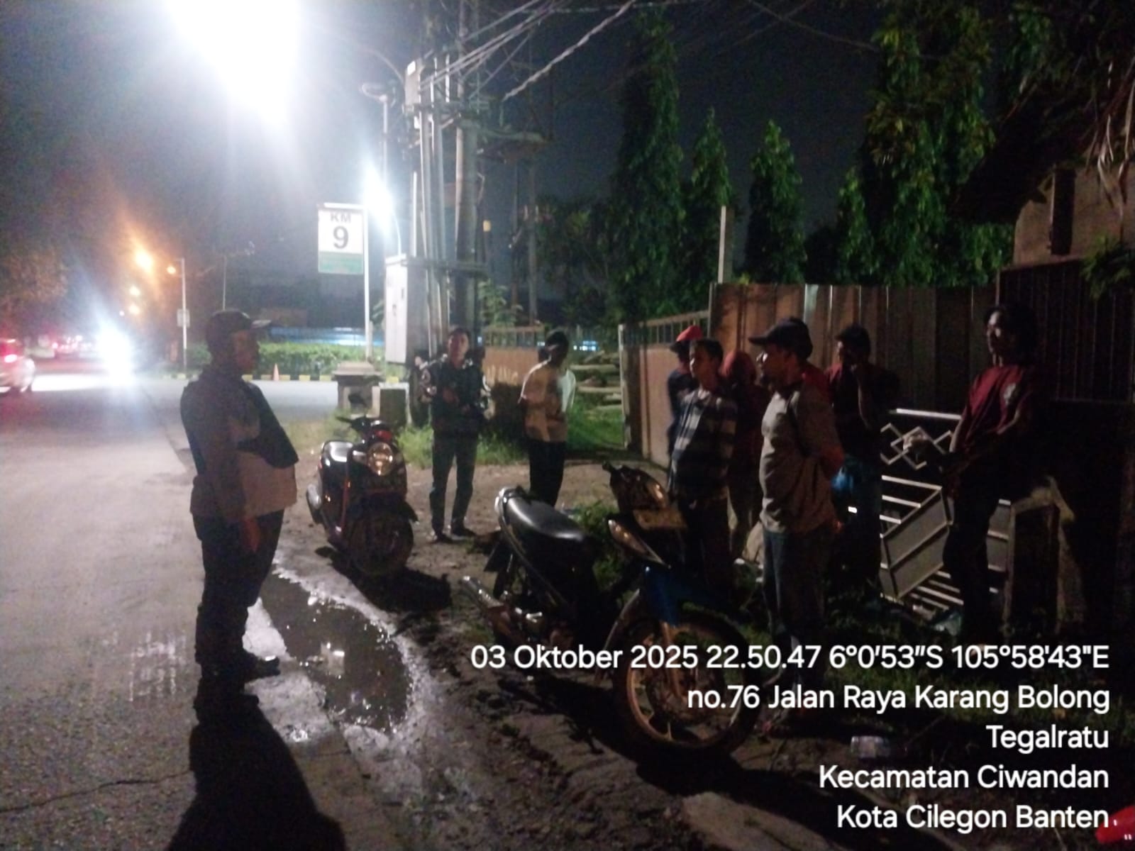 Cilegon - Personil Polsek Ciwandan Polres Cilegon Polda Banten melakukan patroli malam yang bertujuan untuk mengantisipasi adanya aktivitas balap liar dan tawuran kelompok geng motor di daerah hukum Polsek Ciwandan Polres Cilegon Polda Banten, Sabtu (04/10/2025).