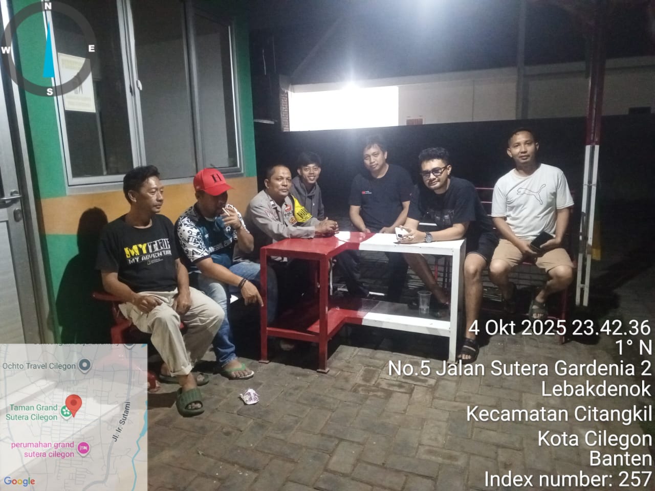 Cilegon - Guna Mencegah Terjadinya Tindak Kejahatan dan Menggiatkan Patroli Pos Ronda Siskamling di Pemukiman warga masyarakat,Personil Polsek Ciwandan Polres Cilegon Polda Banten Mengajak dan memantau pelaksanaan ronda siskamling di lingkungan daerah hukum Polsek Ciwandan, Minggu (05/10/2025).