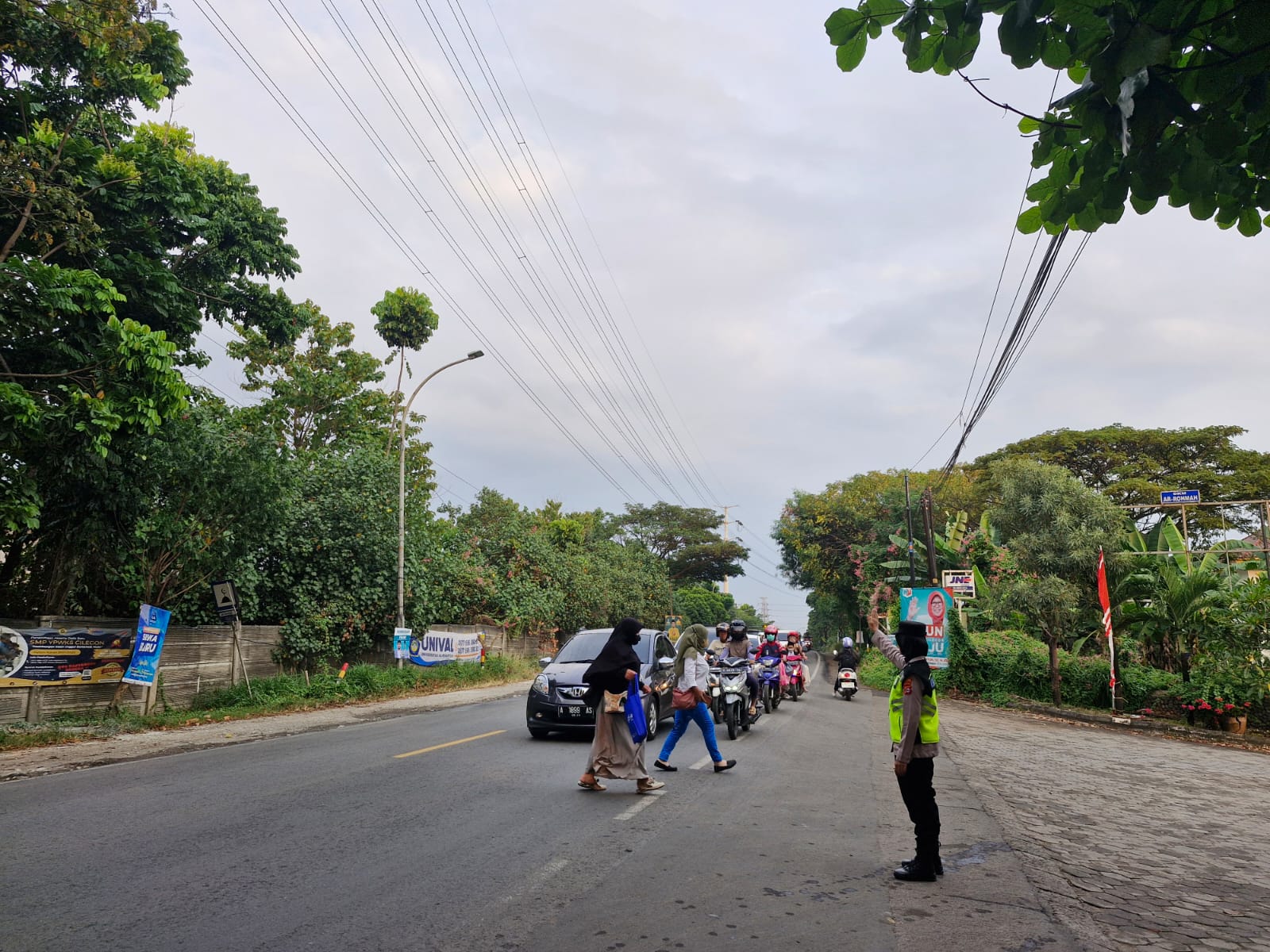 Cilegon,Polres Cilegon Polda Banten Pada Senin/06/10/2025 Pukul 06.30 Wib, Personil Siwas Polres Cilegon, Aipda Emi Prasetyo melaksanakan kegiatan pengaturan arus lalu lintas di Jalur Protokol jalan utama Kota Cilegon tepat nya di jalur depan perumahan arga baja Pura Kota Cilegon.