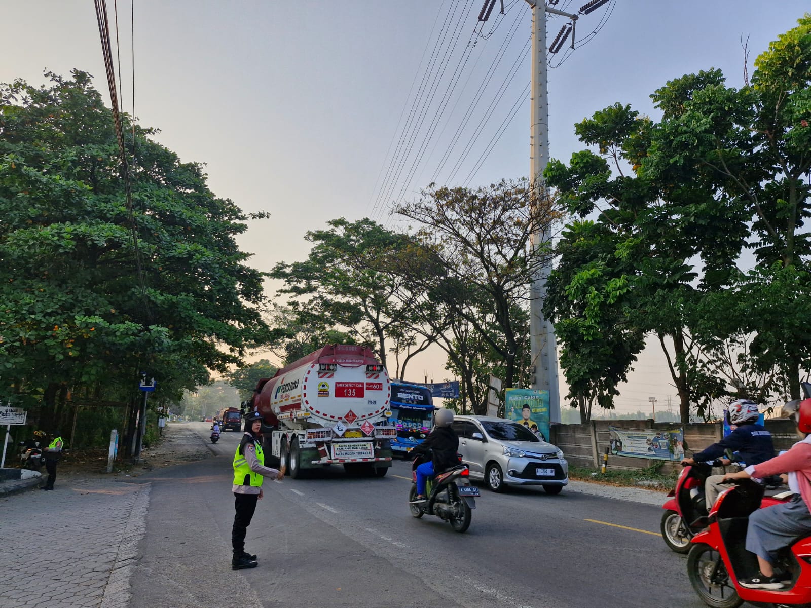 guna cegah Kemacetan pada pagi hari anggota polres lakukan pengaturan arus lalin