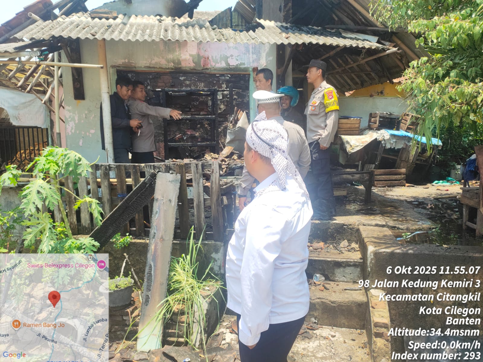 Cilegon - Polsek Ciwandan merespons cepat kebakaran warung dan dapur rumah milik Sdri. Mas'ah di Link Tegal Cabe, Kelurahan Citangkil, Kecamatan Citangkil, Kota Cilegon, pada Senin, 6 Oktober 2025. Api berhasil dipadamkan setelah tiga unit mobil pemadam kebakaran tiba di lokasi,Senin (06/10/2025).