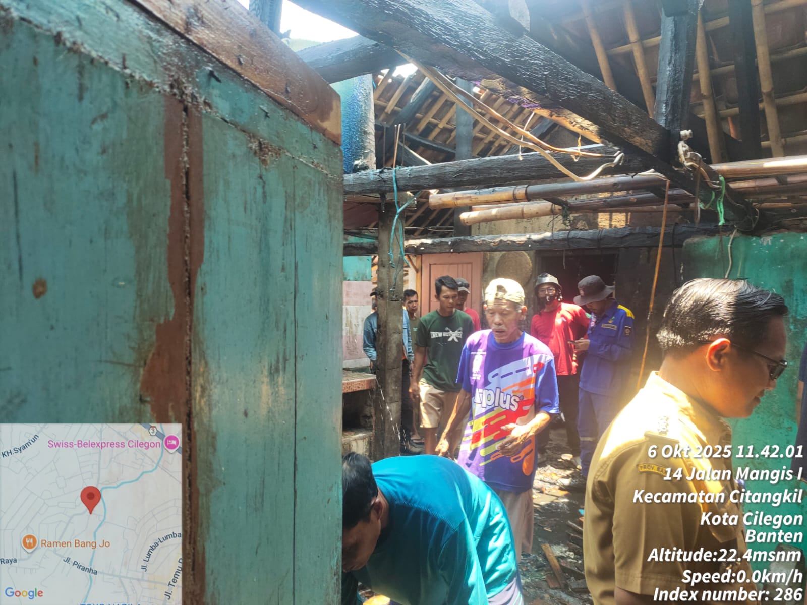 Cilegon - Polsek Ciwandan merespons cepat kebakaran warung dan dapur rumah milik Sdri. Mas'ah di Link Tegal Cabe, Kelurahan Citangkil, Kecamatan Citangkil, Kota Cilegon, pada Senin, 6 Oktober 2025. Api berhasil dipadamkan setelah tiga unit mobil pemadam kebakaran tiba di lokasi,Senin (06/10/2025).