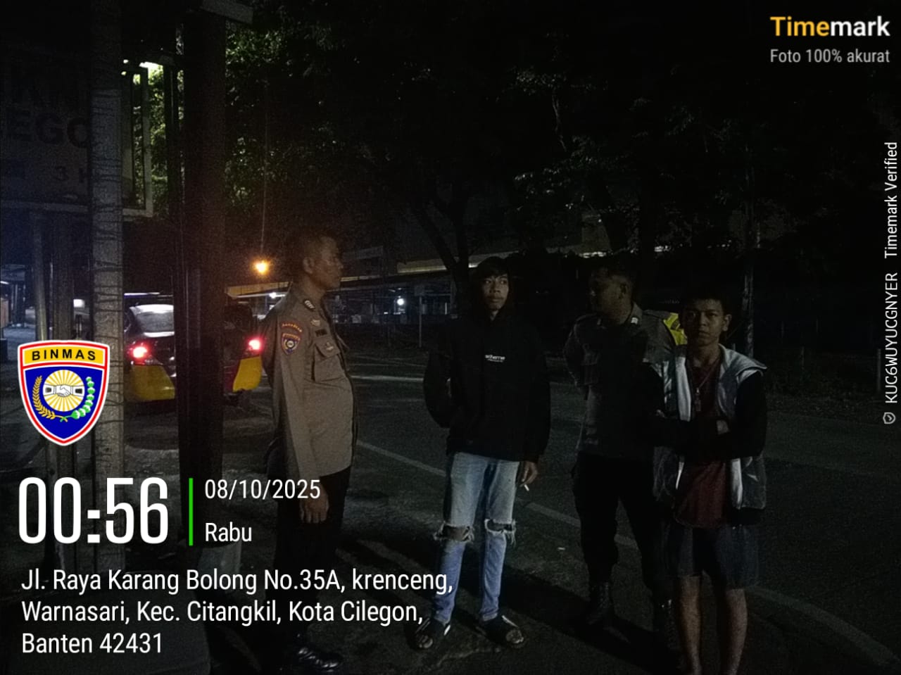 Cilegon - Personil Polsek Ciwandan Polres Cilegon Polda Banten memberikan himbauan kamtibmas dan motivasi kepada anak-anak Remaja Yang sedang Nongkrong Dipinggir Jalan Lingkungan Binaan, Rabu (08/10/2025).