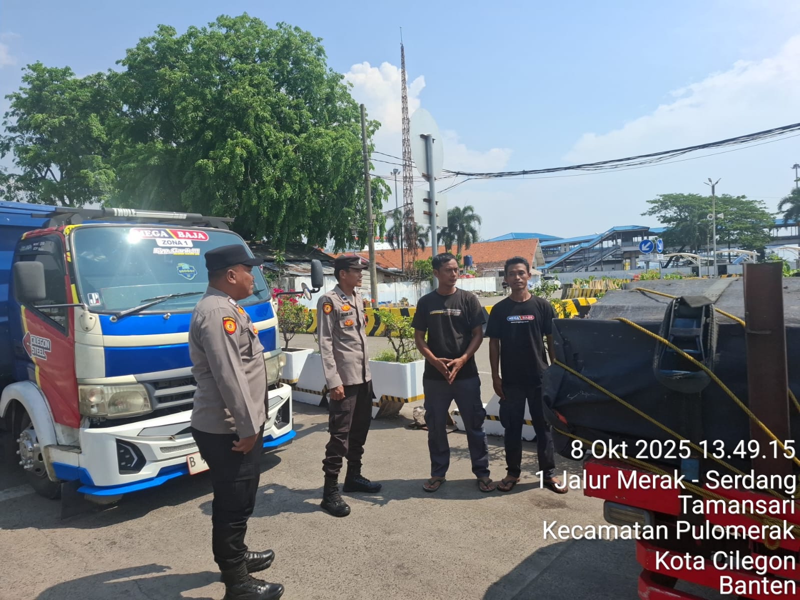 Cilegon - Personel Polsek Kskp Merak Polres Cilegon Polda Banten melaksanakan sambang dan patroli kawasan pelabuhan merak dalam rangka menjaga Harkamtibmas di Kawasan Pelabuhan Merak, Rabu (08/10/2025).