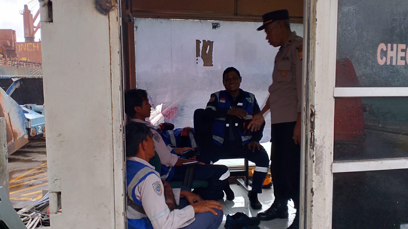 Jalin Silaturahmi, Anggota Bhabinkamtibmas Pelabuhan Polsek KP Banten berbincang dengan Buruh Pelabuhan