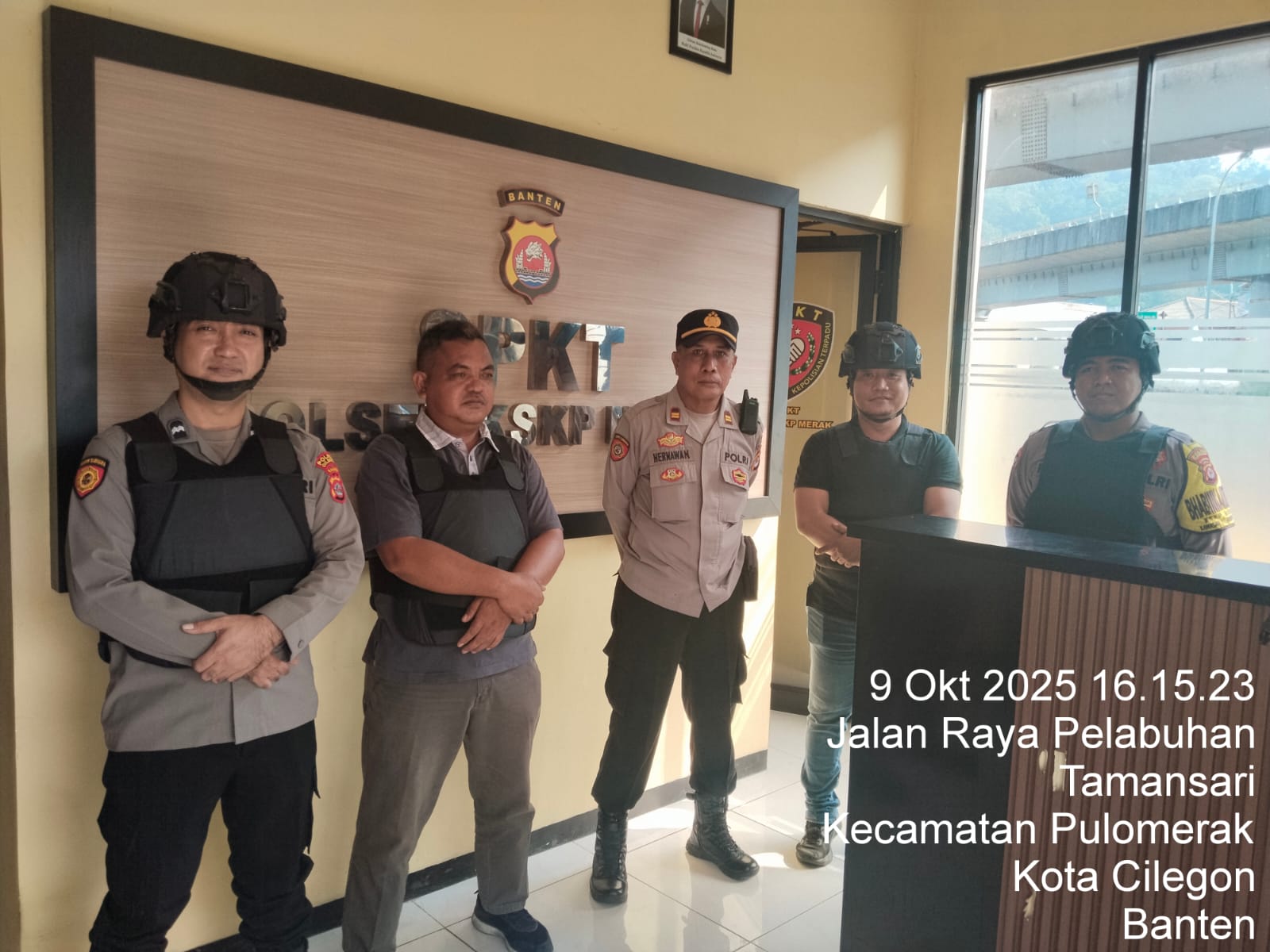 Cilegon - Personel piket jaga Polsek Kskp Merak Polres Cilgon Polda Banten melaksanakan siaga 1 Polsek pelaksanaan Sispam Mako oleh piket siaga dipimpin oleh Kspk Polsek Kskp Merak Polres Cilegon Polda Banten, Kamis (09/10/2025).