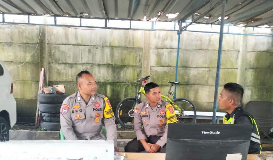 CILEGON - Personel Polsek Cibeber Polres Cilegon Polda Banten menyambangi petugas keamanan (satpam) di wilayah hukum Polsek Cibeber untuk memberikan imbauan keamanan dan ketertiban masyarakat (kamtibmas).