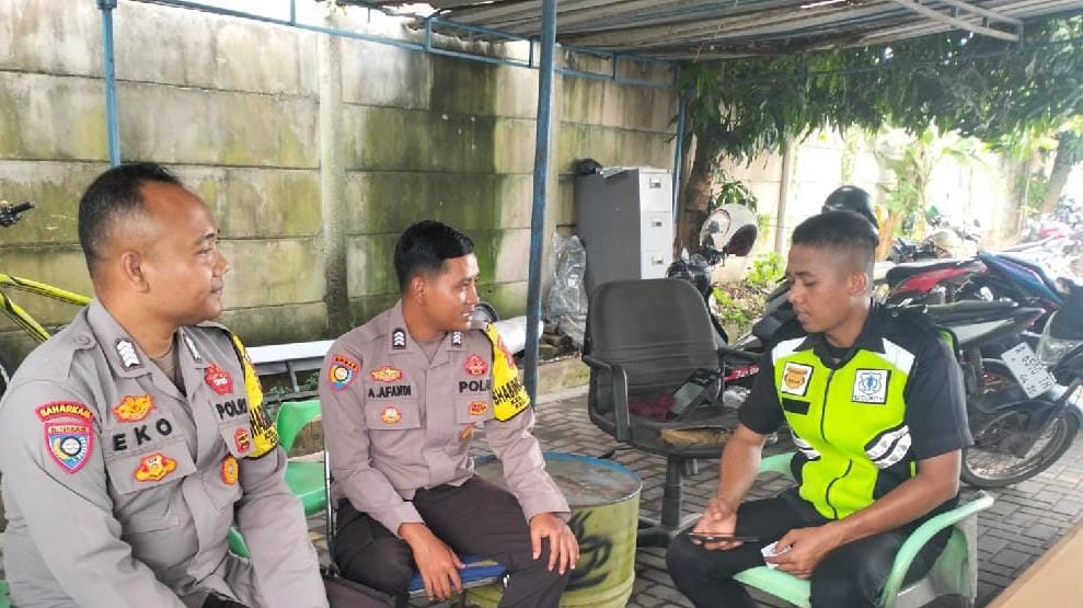 CILEGON - Personel Polsek Cibeber Polres Cilegon Polda Banten menyambangi petugas keamanan (satpam) di wilayah hukum Polsek Cibeber untuk memberikan imbauan keamanan dan ketertiban masyarakat (kamtibmas).