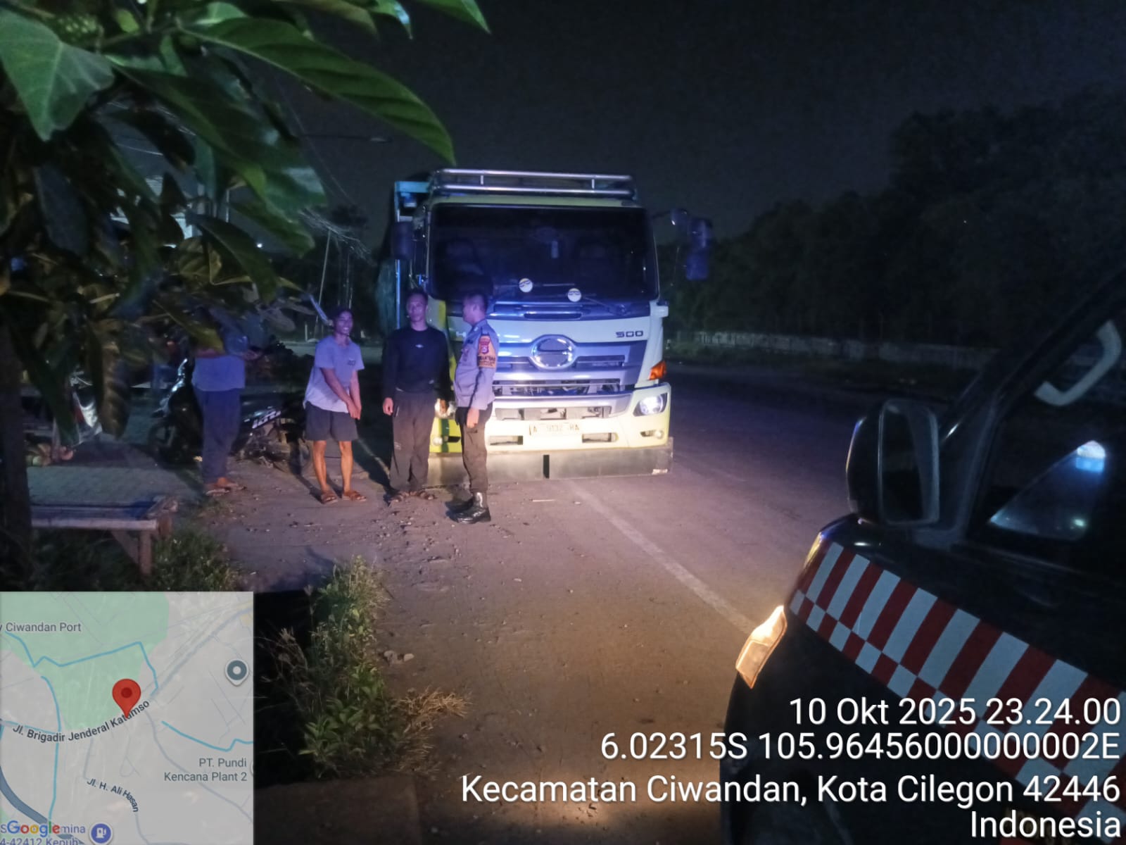 Cilegon - Guna Mencegah Gangguan kamtibmas dan Tindakan Kriminalitas Kejahatan Jalanan,Personil Polsek Ciwandan Polres Cilegon Polda Banten Sampaikan Pesan-Pesan Kamtibmas Kepada Sopir Angkutan Barang, Sabtu (11/10/2025).