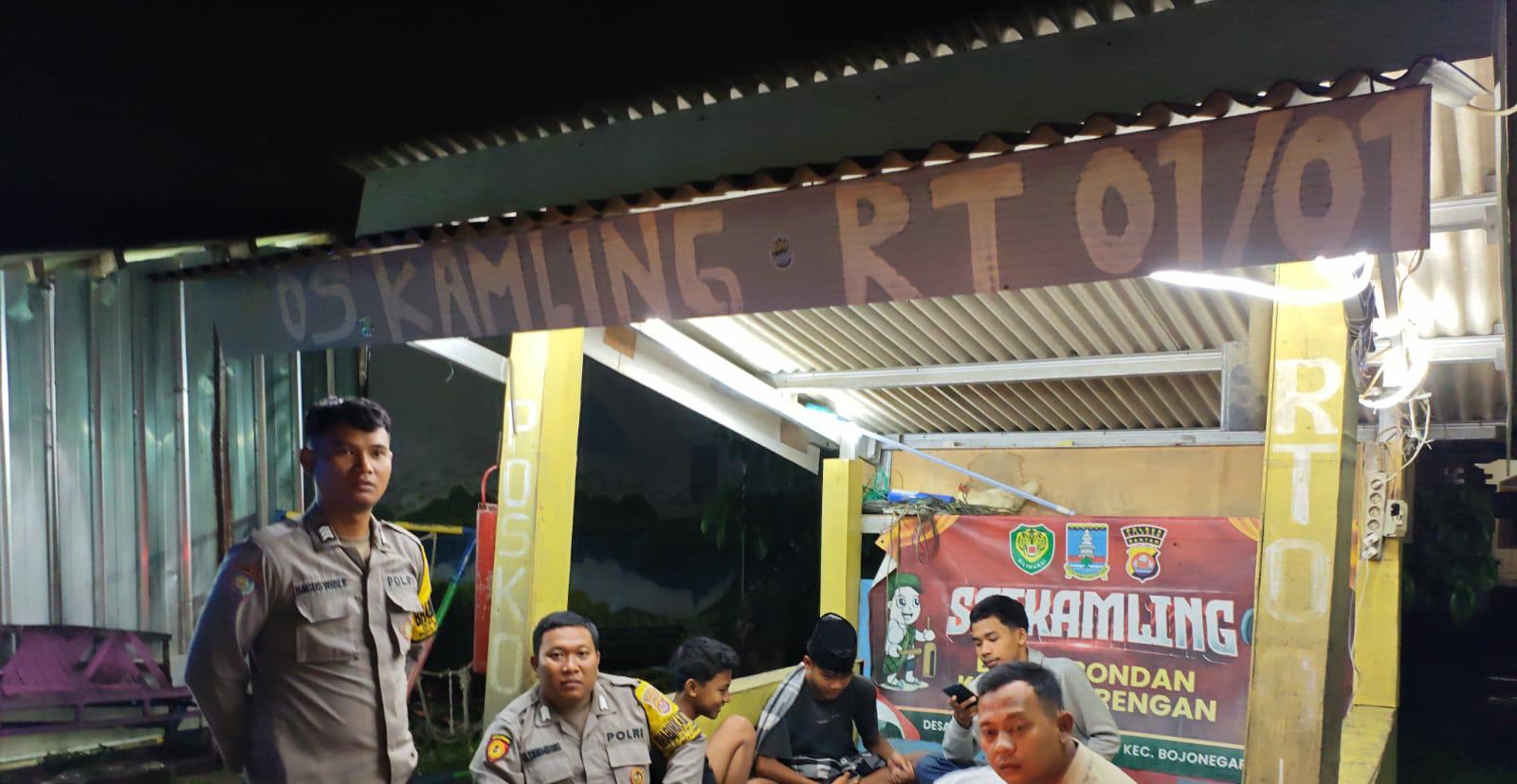 Cilegon ~ Dalam upaya menjaga situasi kamtibmas tetap kondusif, Bhabinkamtibmas Polsek Bojonegara Polres Cilegon Polda Banten, Bripka Banbang dan Bripka Ghery melaksanakan kegiatan kontrol dan pemantauan ronda malam,di sejumlah pos ronda warga yang berada di wilayah binaannya, Minggu (12/10/2025).