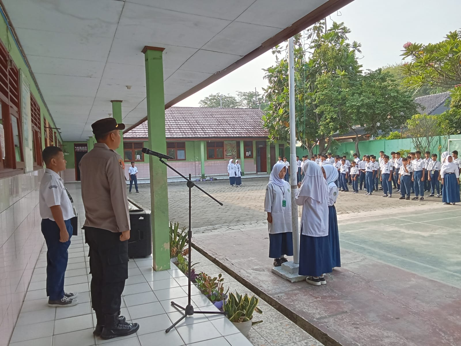 Kapolres Cilegon Polda Banten AKBP Dr. Martua Raja Taripar Laut Silitonga melalui Kapolsek Anyar Polres Cilegon Polda Banten IPTU Iwan Sofiyan menerangkan bahwa telah melakukan kegiatan memimpin Upacara di Sekolah MTS Al- Khaeriyah Anyar, serta mengimplementasikan Program Quick Wins Presisi Polri.