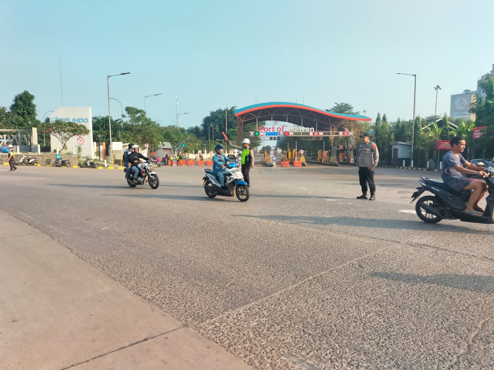 Kapolres Cilegon AKBP Martua Raja Taripar Laut Silitonga Melalui Kapolsek Kskp Banten Polres Cilegon AKP Fredo Leonard menyampaikan Laksanakan Pengamanan Sesuai plotinganya lakukan Pengaturan Supaya Arus Lalu Lintas tetap Berjalan lancar dan Pastikan tidak ada hambatan.
