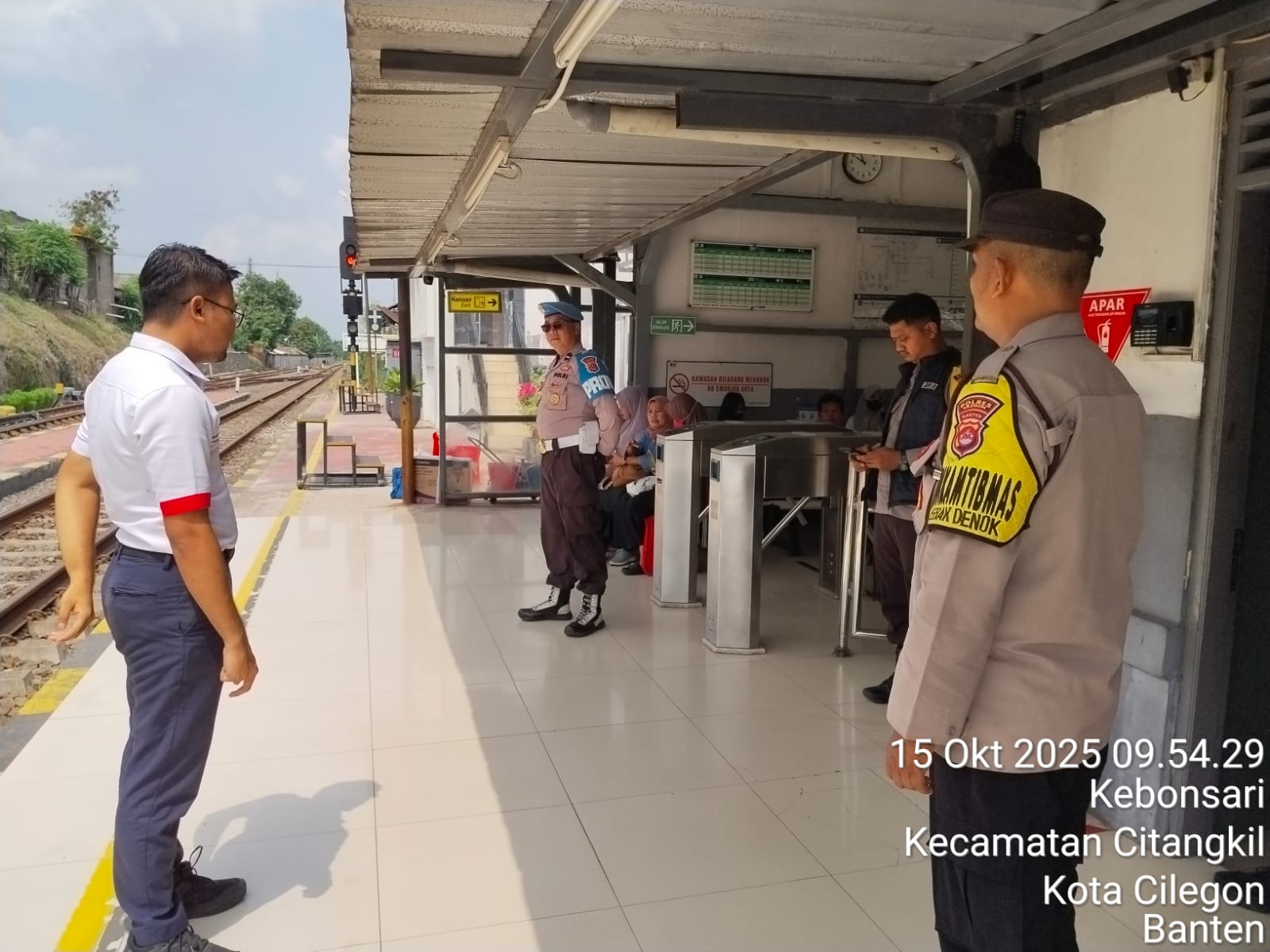 Cilegon - Personil Polsek Ciwandan Polres Cilegon Polda Banten melaksanakan giat patroli Dan dengan sambangi Petugas Stasiun Kereta Api dan penjaga pintu perlintasan kereta api,Rabu (15/10/2025).