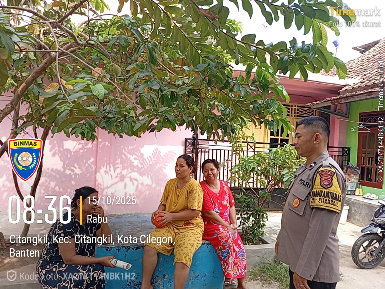 Cilegon - Bhabinkamtibmas Polsek Ciwandan Polres Cilegon Polda Banten merupakan ujung tombak kepolisian yang bersentuhan langsung dengan masyarakat guna menciptakan situasi kamtibmas yang aman dan kondusif,Rabu (15/10/2025).