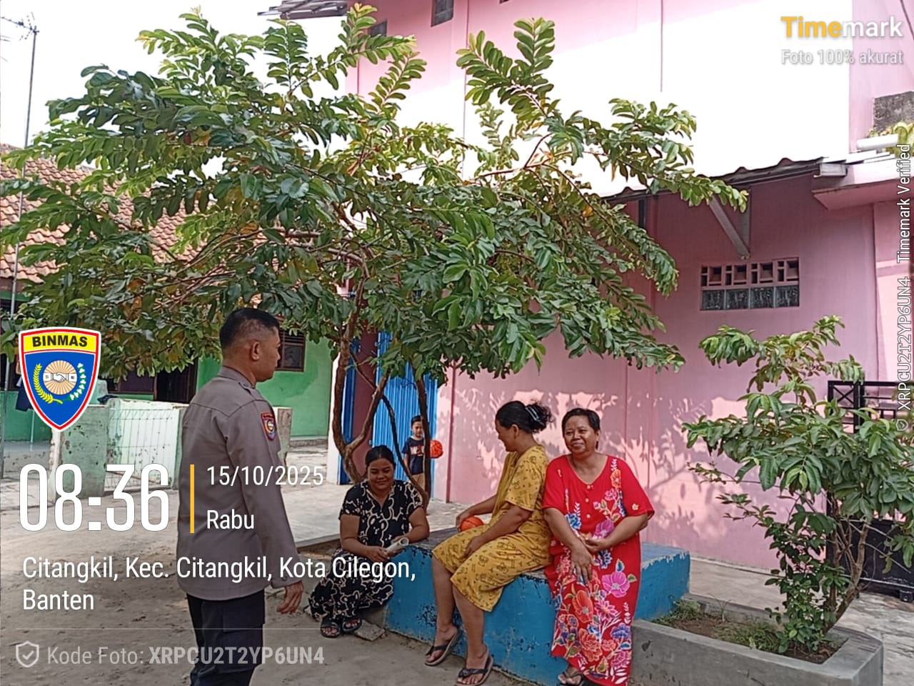 Cilegon - Bhabinkamtibmas Polsek Ciwandan Polres Cilegon Polda Banten merupakan ujung tombak kepolisian yang bersentuhan langsung dengan masyarakat guna menciptakan situasi kamtibmas yang aman dan kondusif,Rabu (15/10/2025).