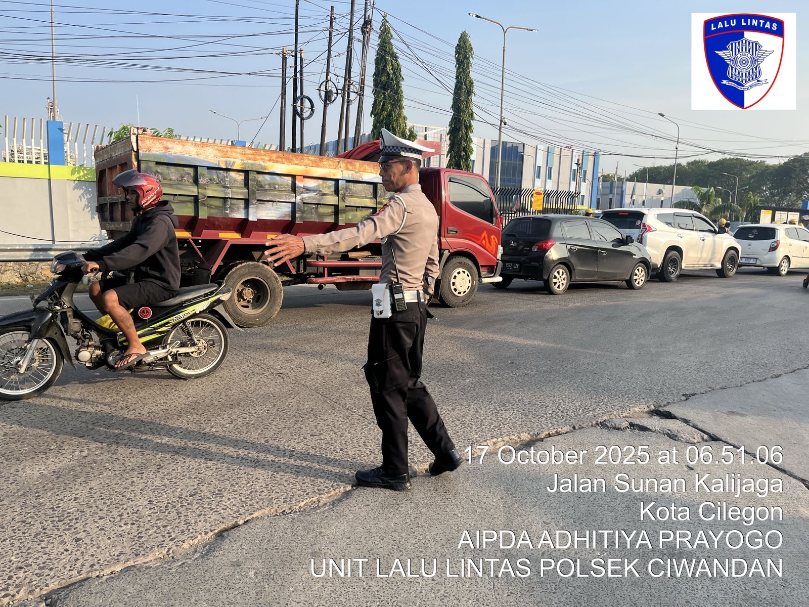 Cilegon - Personil  Polsek Ciwandan Polres Cilegon Polda Banten melaksanakan giat Strong Poin Pengaturan Lalu Lintas Disimpang Brown Kelurahan Gunung Sugih guna menciptakan ketertiban, keamanan dan Kelancaran Lalu-lintas bagi masyarakat, Jum’at (17/10/2025).
