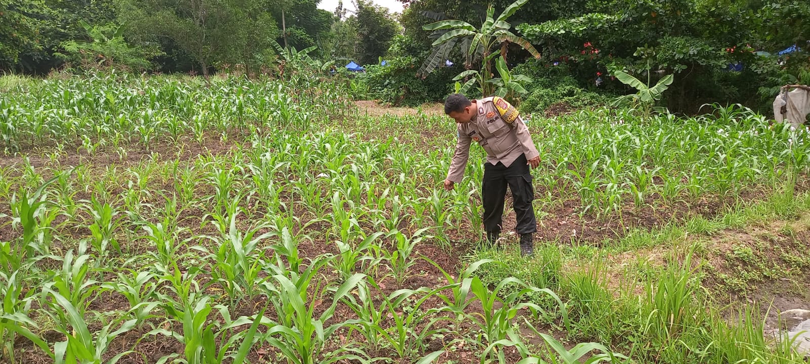 Bhabinkamtibmas Kota Bumi Pantau Langsung Tanaman Jagung, Dukung Ketahanan Pangan