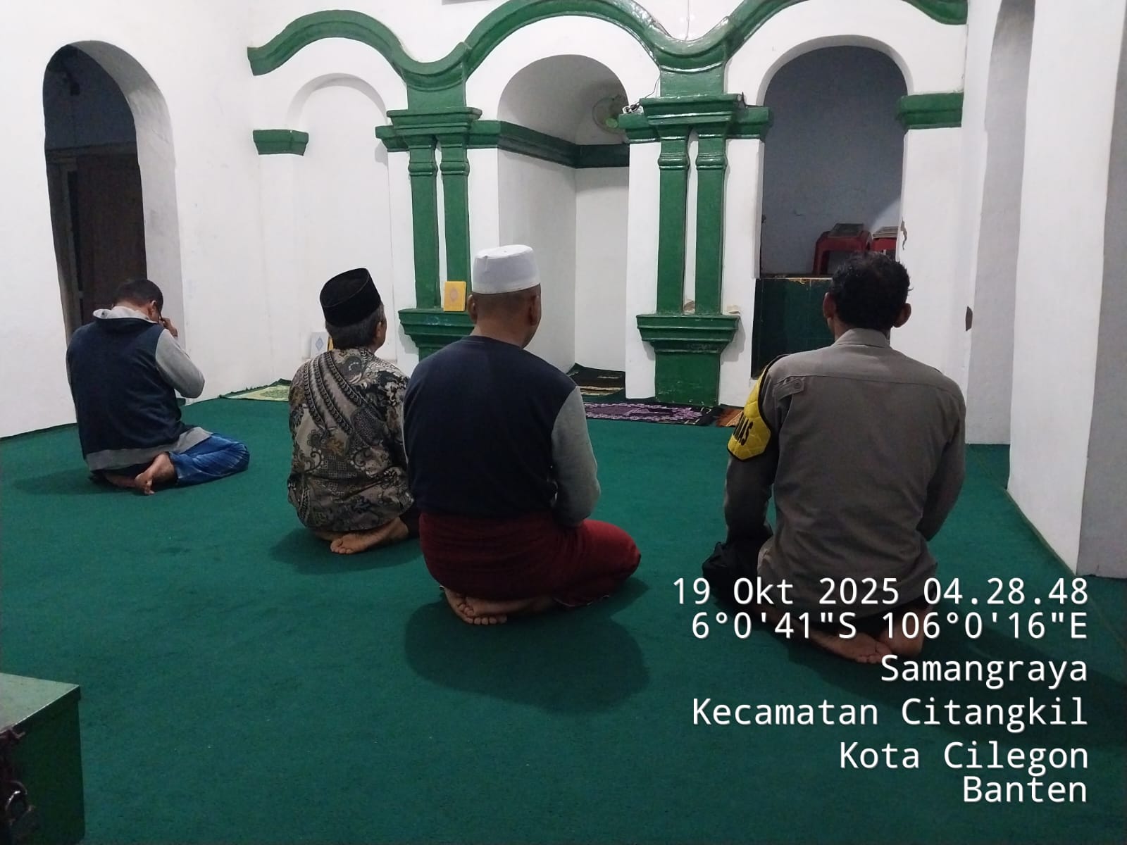 Dalam Pembinaan Rohani, Bhabinkamtibmas Polsek Ciwandan Polres Cilegon Sholat Subuh.