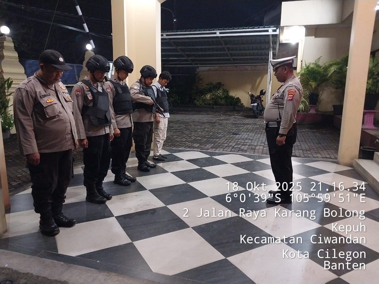 Cilegon - Personil Polsek Ciwandan Polres Cilegon Polda Banten menggelar apel malam Persiapan Patroli yang dipimpin Oleh Pawas Polsek Ciwandan IPTU Deni Mulyana, Minggu (19/10/2025).