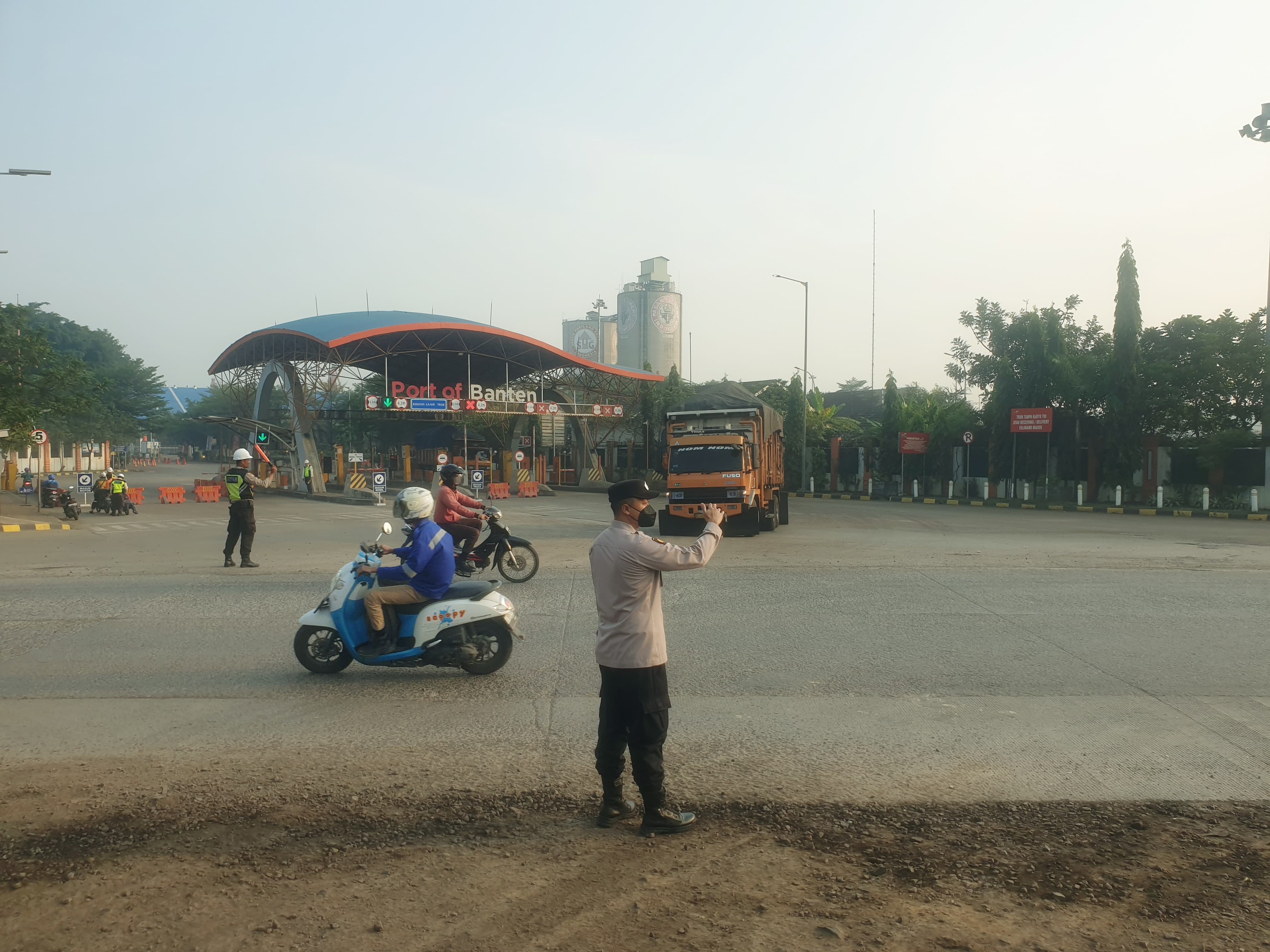 Mengatasi Kemacetan di Sore hari, Polsek Kawasan Pelabuhan Banten Polres Cilegon Lakukan Pengaturan Lalu lintas Kendaraan