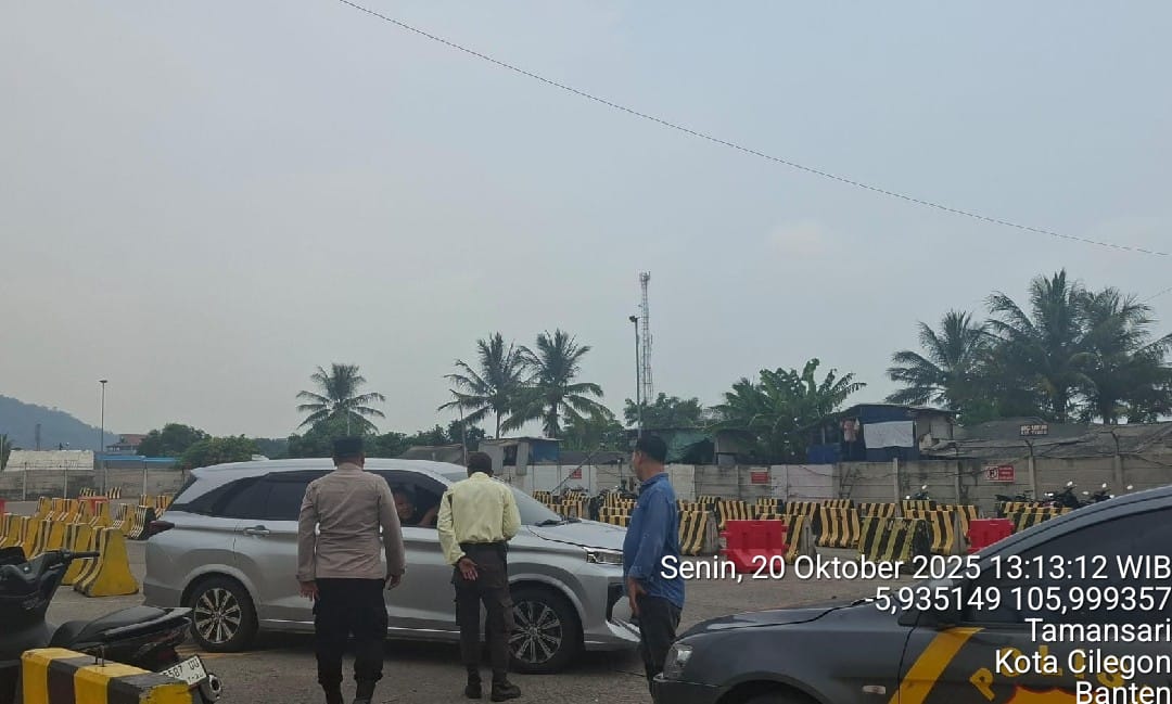 Cilegon - Personel Polsek Kskp Merak Polres Cilegon Polda Banten melaksanakan sambang dan patroli kawasan pelabuhan merak dalam rangka menjaga Harkamtibmas di Kawasan Pelabuhan Merak, Senin (19/10/2025).