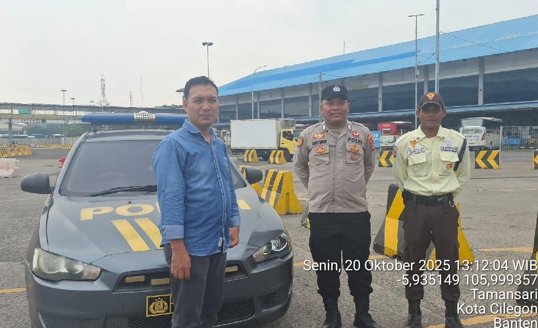 Cilegon - Personel Polsek Kskp Merak Polres Cilegon Polda Banten melaksanakan sambang dan patroli kawasan pelabuhan merak dalam rangka menjaga Harkamtibmas di Kawasan Pelabuhan Merak, Senin (19/10/2025).