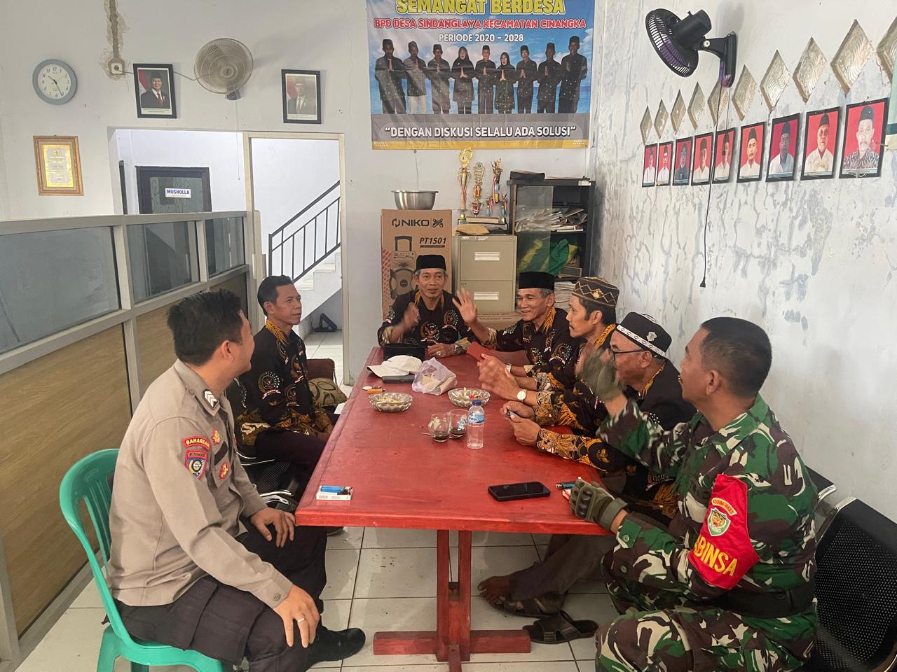 Kapolres Cilegon Polda Banten AKBP Martua Raja Taripar Laut Silitonga Melalui Kapolsek Cinangka Polres Cilegon Polda Banten IPTU Rusnata Mengatakan bahwa sebagai wujud implementasi salah satu poin dalam program keinginan Panglima Kapolda Banten yaitu ” GUYUB TNI-POLRI ” Personil Bhabinkamtibmas Polsek Cinangka harus bisa bersinergi dengan Babinsa Koramil Cinangka dalam setiap pelaksanaan tugas di Desa binaannya.