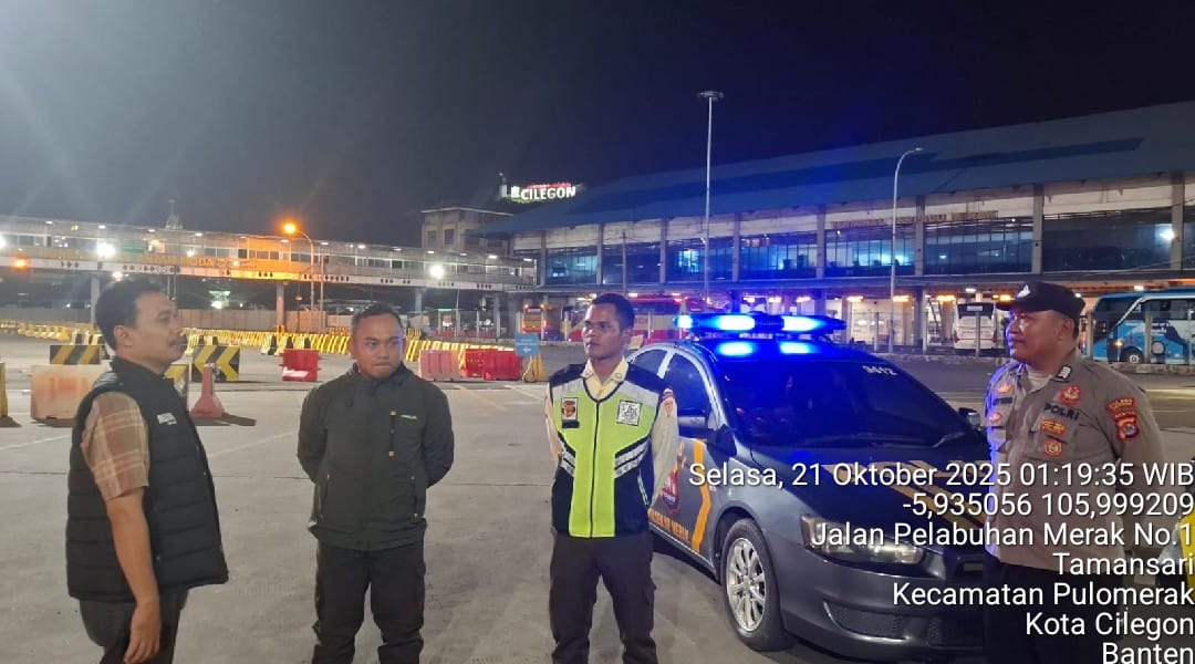 Cilegon - Personil Polsek Kskp Merak Polres Cilegon melaksanakan patroli di kawasan pelabuhan merak memberikan rasa aman dan damai, Selasa (21/10/2025)