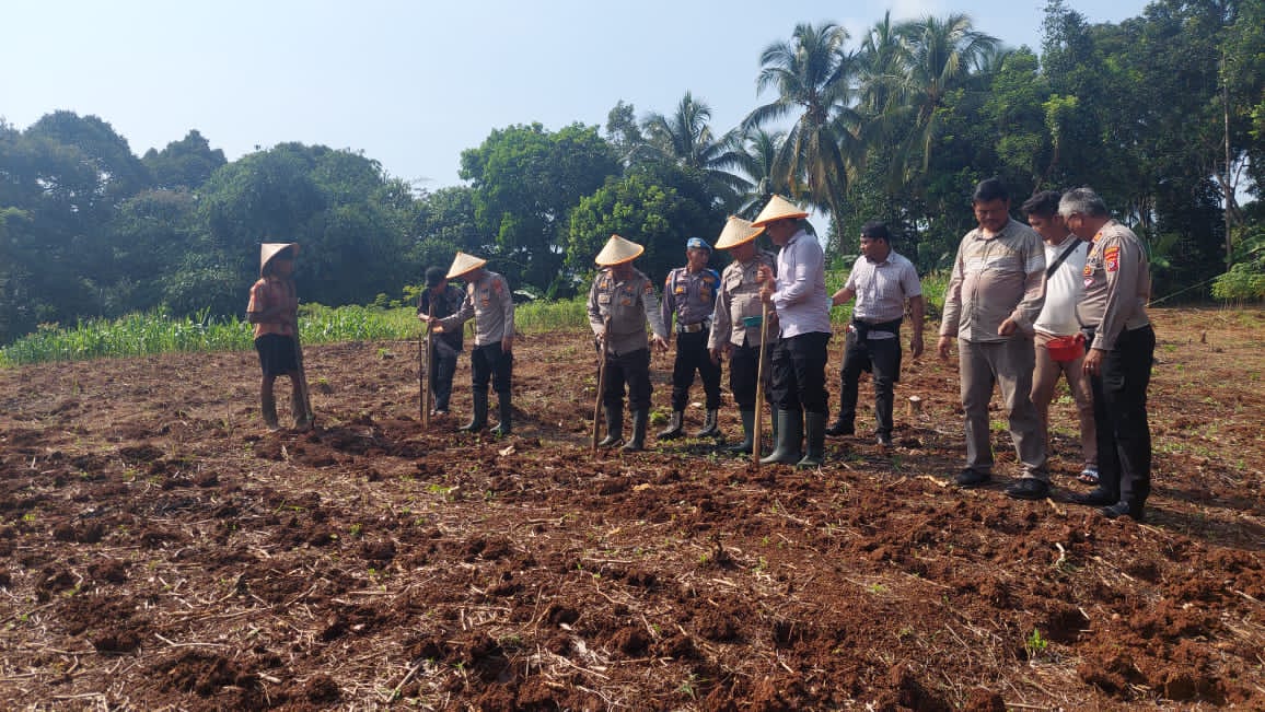 Penanaman Jagung serentak Kuartal IV Seluruh Indonesia di lahan milik kelompok tani Bpk. Maman Rt. 01/01 Kp. Macute Kel. Angsana Kec. Mancak-Serang daerah hukum Polres Cilegon.