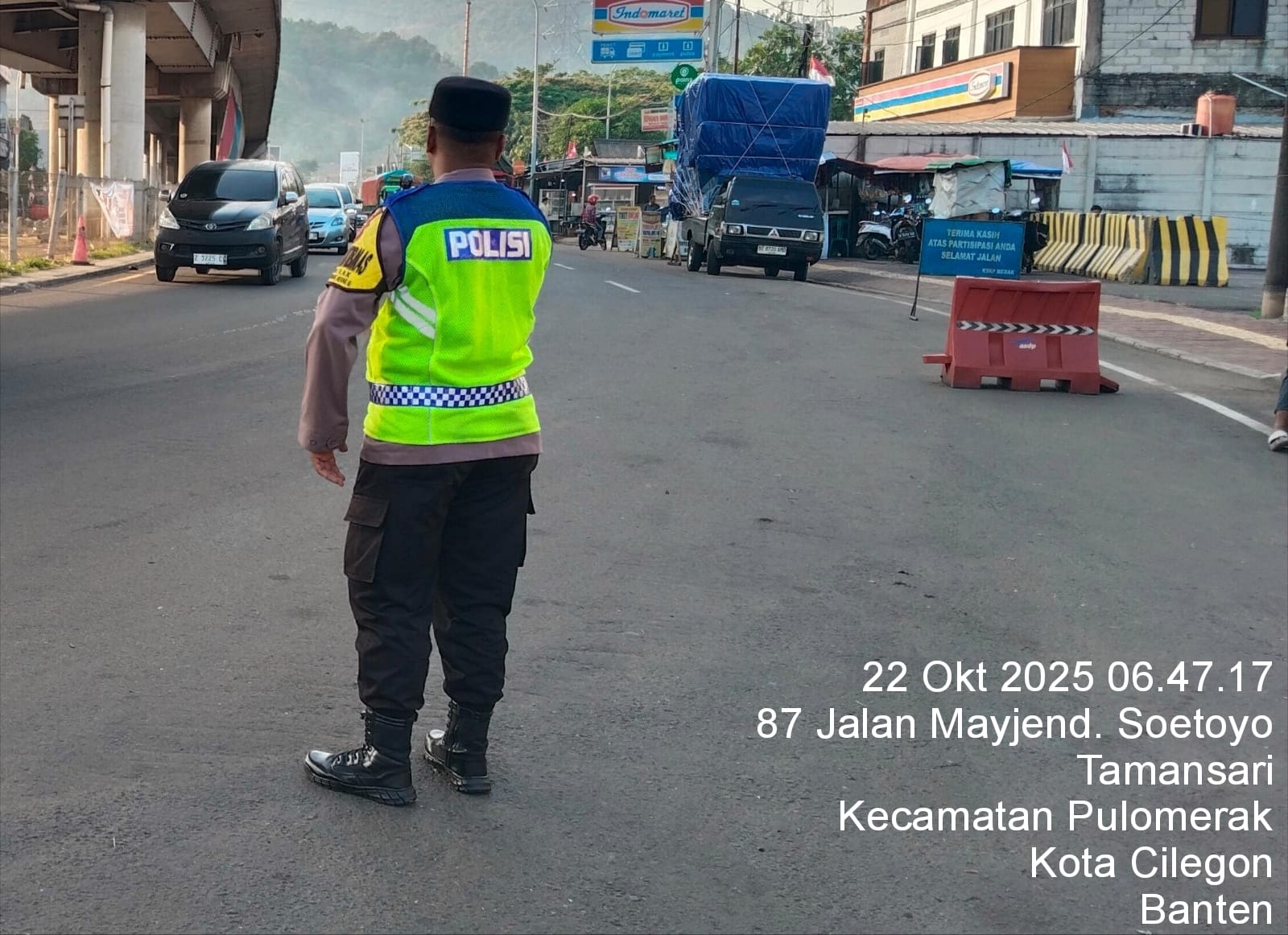 Cilegon - Dalam rangka peningkatan pelayanan prima kepada masyarakat, Kskp Merak Polres Cilegon Polda Banten melaksanakan pengaturan antrian R4 yang akan masuk ke Kapal Ferry di Pelabuhan Merak, Rabu (22/10/2025).