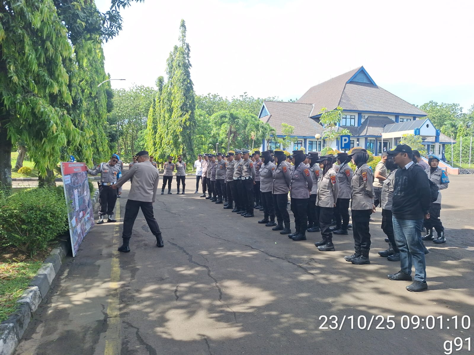 Cilegon – Sebelum melaksanakan pengamanan unjuk rasa,Kapolsek Ciwandan Polres Cilegon Polda Banten KOMPOL Andi Suherman Pimpin Apel Kesiapan Pelaksanaan Pengamanan unjuk rasa dan berikan Arahan Kepada Personil Yang Melaksanakan Pengamanan Unjuk Rasa, Kamis (23/10/2025).