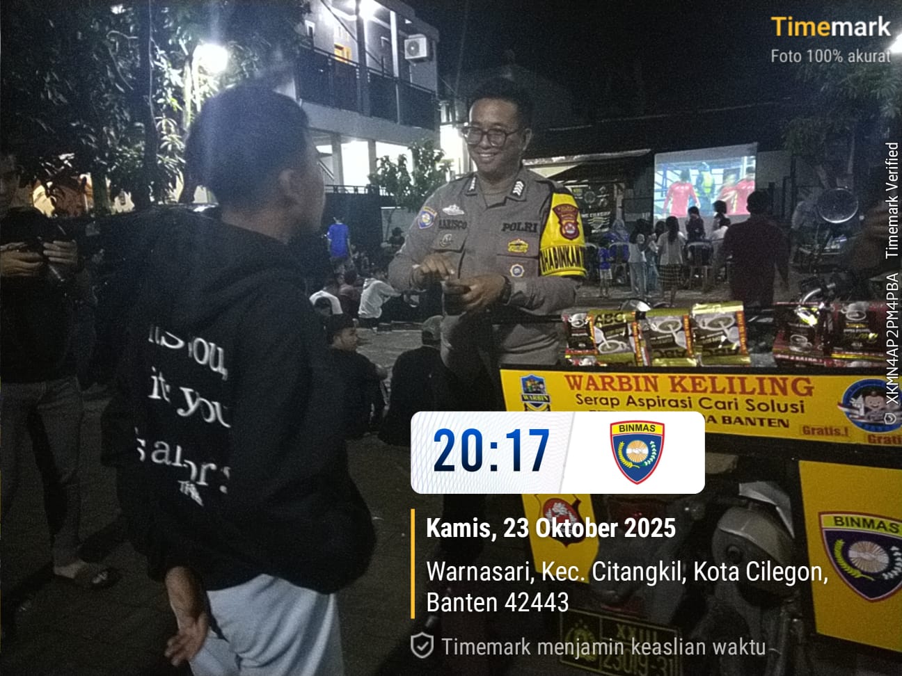Cilegon - Bhabinkamtibmas Polsek Ciwandan Polres Cilegon Polda Banten, BRIPKA Marisco melaksanakan kegiatan WARBIN (warung Blnhabinkamtibmas) di Lingkungan Binaan,Jum’at (24/10/2025).