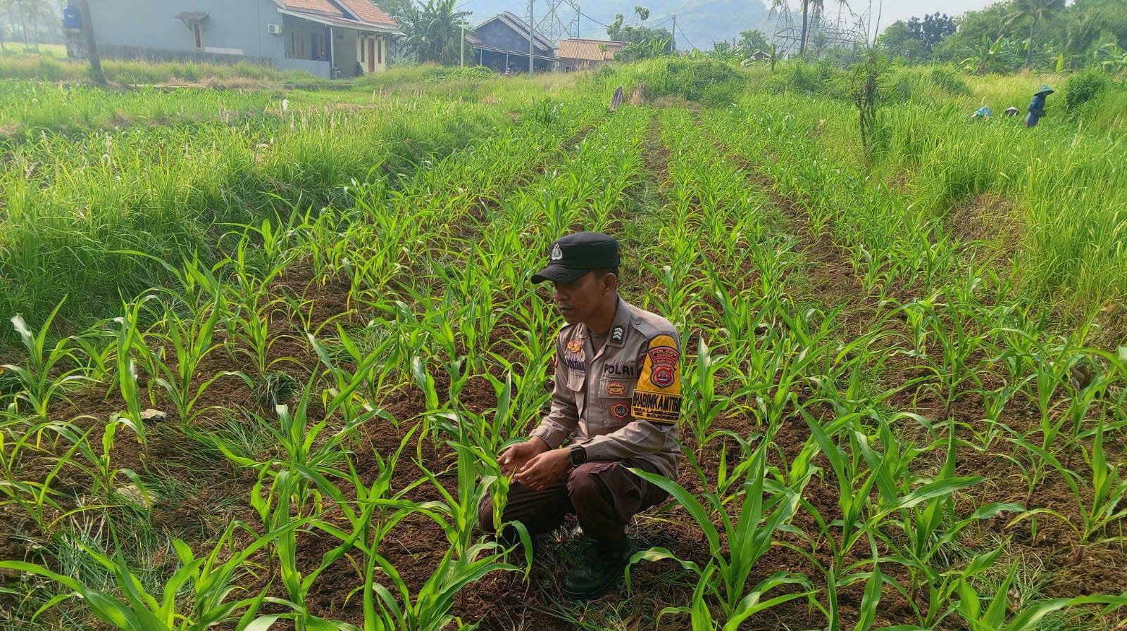 Brigadir Andri Bhabinkamtibmas bersama Petani Dorong Ketahanan Pangan Lewat Monitoring Tanaman Jagung
