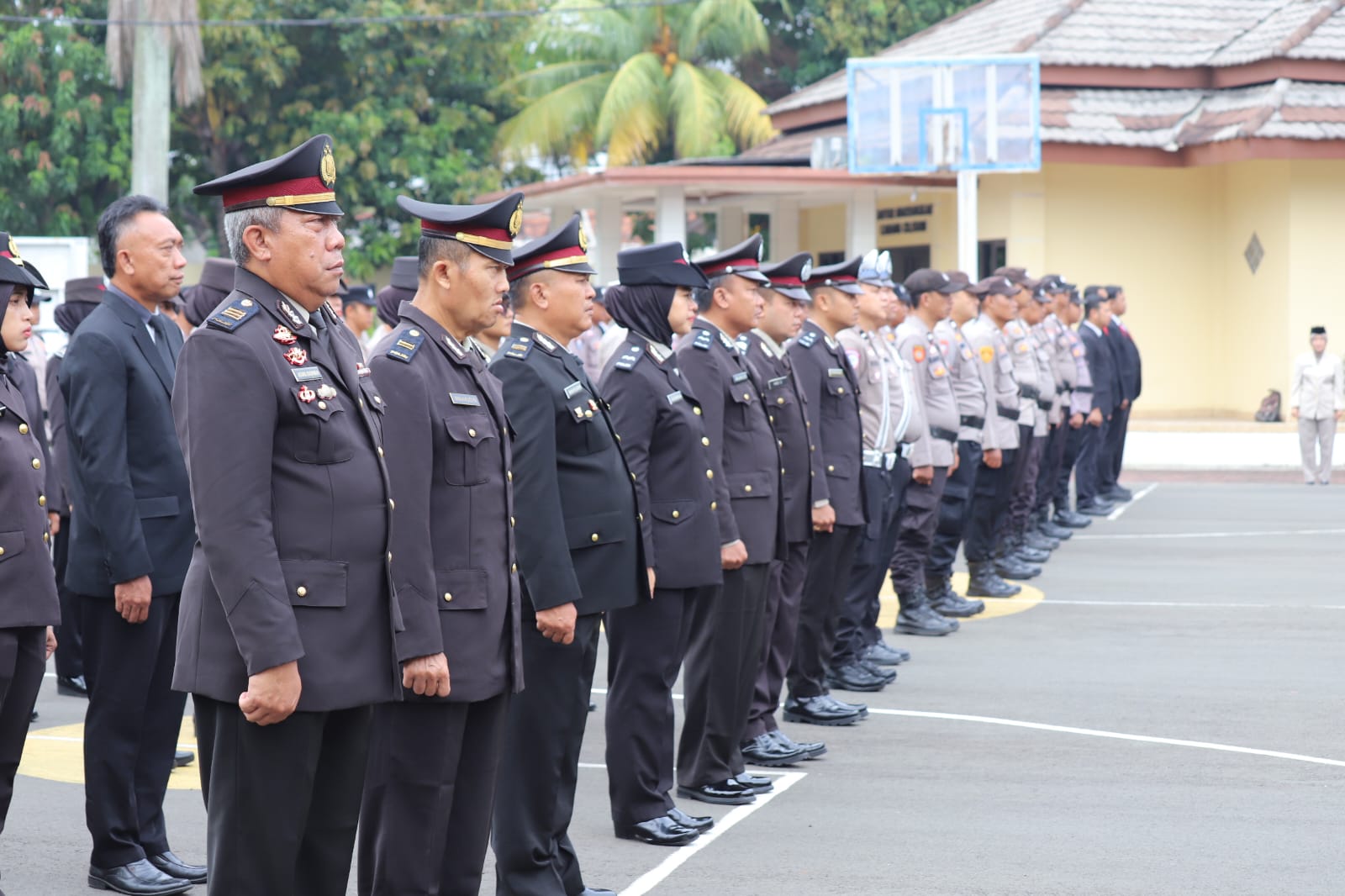 Dalam upacara yang dimulai pukul 07.00 WIB tersebut, hadir para pejabat utama Polres Cilegon, Kapolsek jajaran, personel Polri, ASN, serta perwakilan Polwan. Susunan petugas upacara turut diisi oleh para personel terbaik Polres Cilegon, antara lain Perwira Upacara AKP Suryanto, S.E., Komandan Upacara IPDA Kusumah, S.Sos, dan pembaca doa PENDA Ahmad Fatulloh.