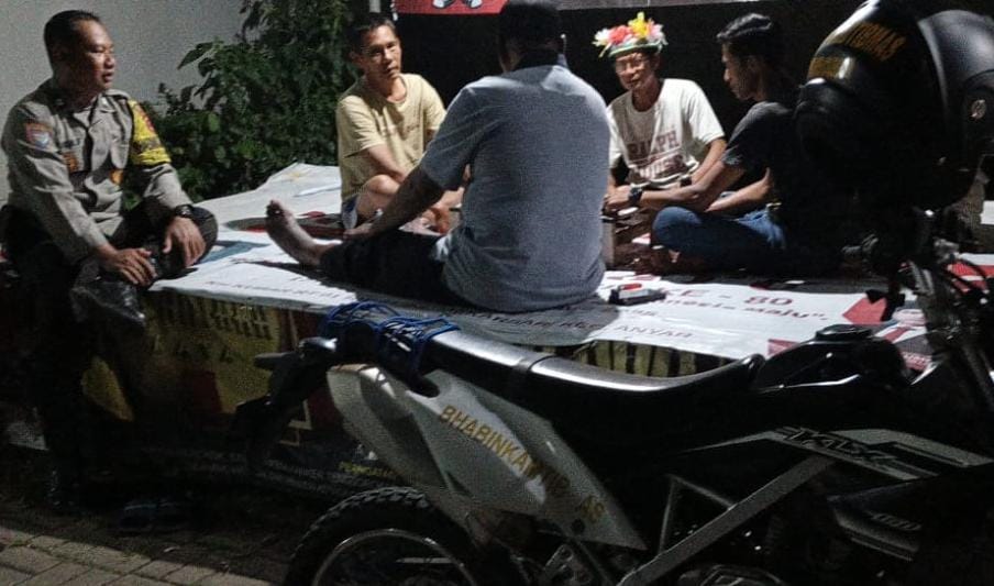 Cilegon - Personel Bhabinkamtibmas Polsek Anyar Polres Cilegon Polda Banten Aiptu Irvan melaksanakan sambang Ronda Siskamling Dalam rangka menjaga Harkamtibmas dan Sebagai bentuk mendukung Program Quick Wins Presisi Polri, Rabu (29/10).