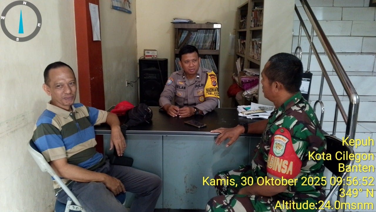 Cilegon - Momen kekompakan TNI-Polri ditunjukkan Oleh Bhabinkamtibmas Polsek Ciwandan Polres Cilegon Polda Banten dengan Kegiatan Sambang bersama Babinsa Koramil Ciwandan, moment tersebut ditunjukkan TNI-Polri Dalam Melaksanakan tugas Bersama, Kamis (30/10/2025).