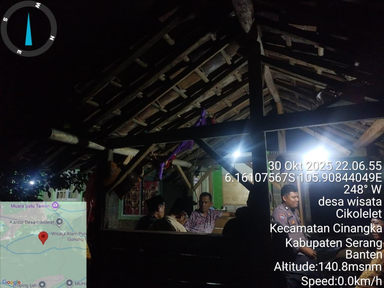 *Polres Cilegon* || Personel Bhabinkamtibmas Polsek Cinangka melaksanakan Program Komandan Wish Kapolda Banten RONDA SATKAMLING menyampaikan komunikasi dengan Petugas Siskamling agar berperan aktif dalam menciptakan Harkamtibmas yang aman dan Kondusif, Jumat (31/10/2025).