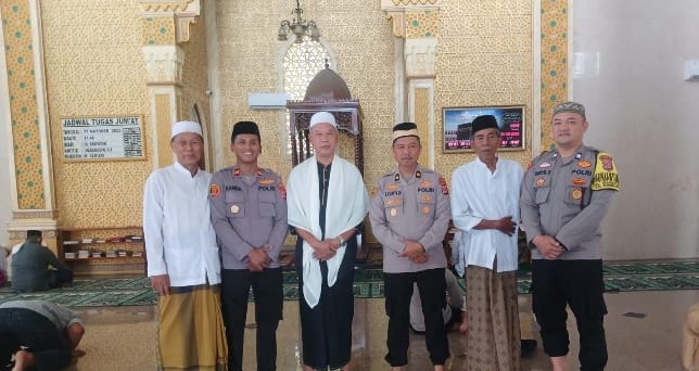 -POLRES CILEGON–Polda Banten. Kapolsek Purwakarta IPTU Sukanda bersama Kabag SDM Polres Cilegon Kompol Entang Cahyadi melaksanakan kegiatan Jumat Keliling (Jumling) di Masjid Al falah, Kelurahan Kebondalem, Kecamatan Purwakarta. Kegiatan ini bertujuan untuk menjalin silaturahmi dengan masyarakat sekaligus menyampaikan himbauan terkait keamanan dan ketertiban masyarakat (kamtibmas). Jumat.(31-10-2025).
