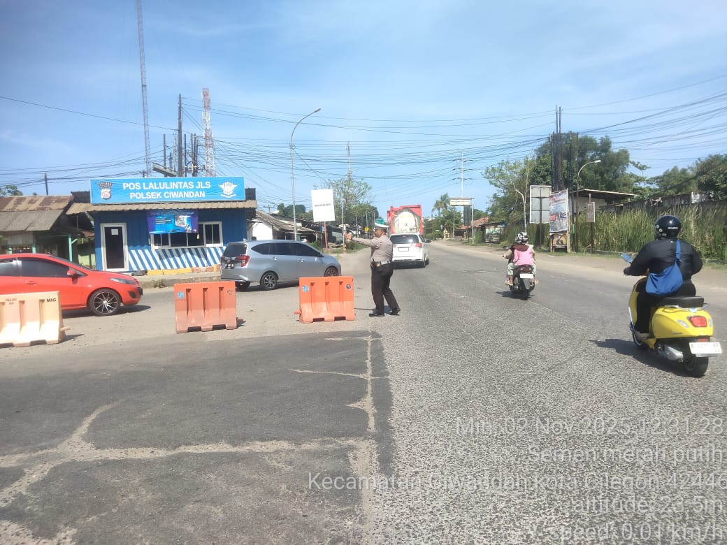 Cilegon - Weekend kali ini Personil Unit Lantas Polsek Ciwandan Polres Cilegon Polda Banten melaksanakan pengaturan lalu lintas di Simpang JLS tepatnya di Pertigaan depan PT. Semen Indonesia Demi Kelancaran Arus Lalu-lintas Wisata, Minggu (02/11/2025).