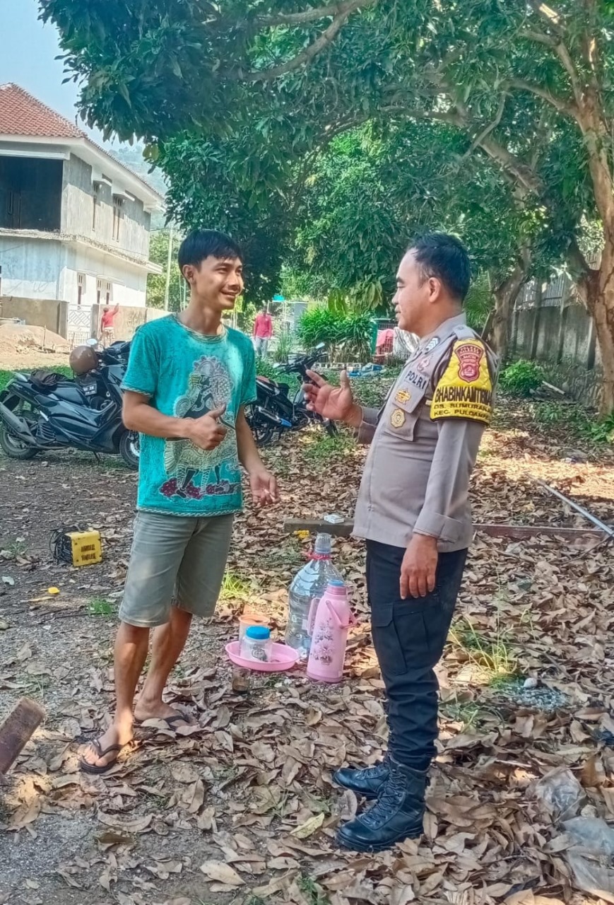 Bhabinkamtibmas Desa menghimbau untuk menyampaikan kepada warganya mengajak untuk berbincang-bincang yang menyangkut kepentingan