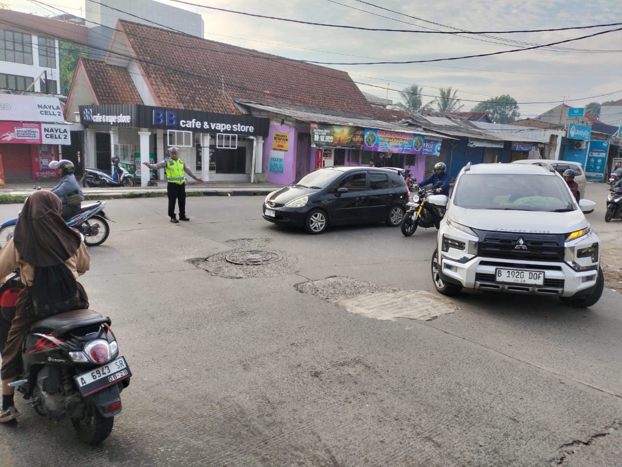 Unit Lantas Polsek Cilegon dan Dishub urai kemacetan.