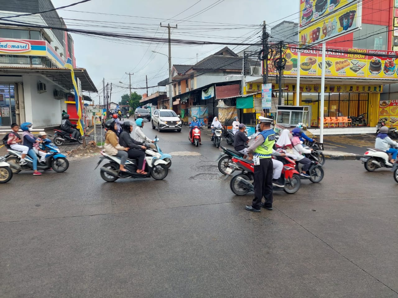 Unit Lantas Polsek Cilegon dan Dishub cilegon urai kemacetan lalu lintas.