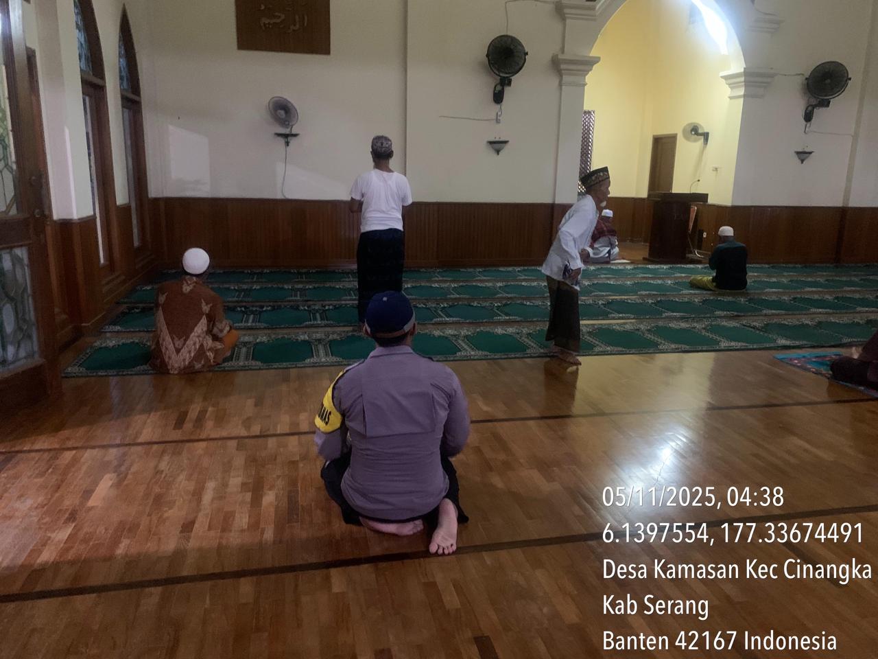 *POLRES CILEGON* Bhabinkamtibmas Polsek Cinangka Polres Cilegon Polda Banten laksanakan Subuh keliling di Desa Pasauran Kec. Cinangka, Rabu (05/11/2025)
