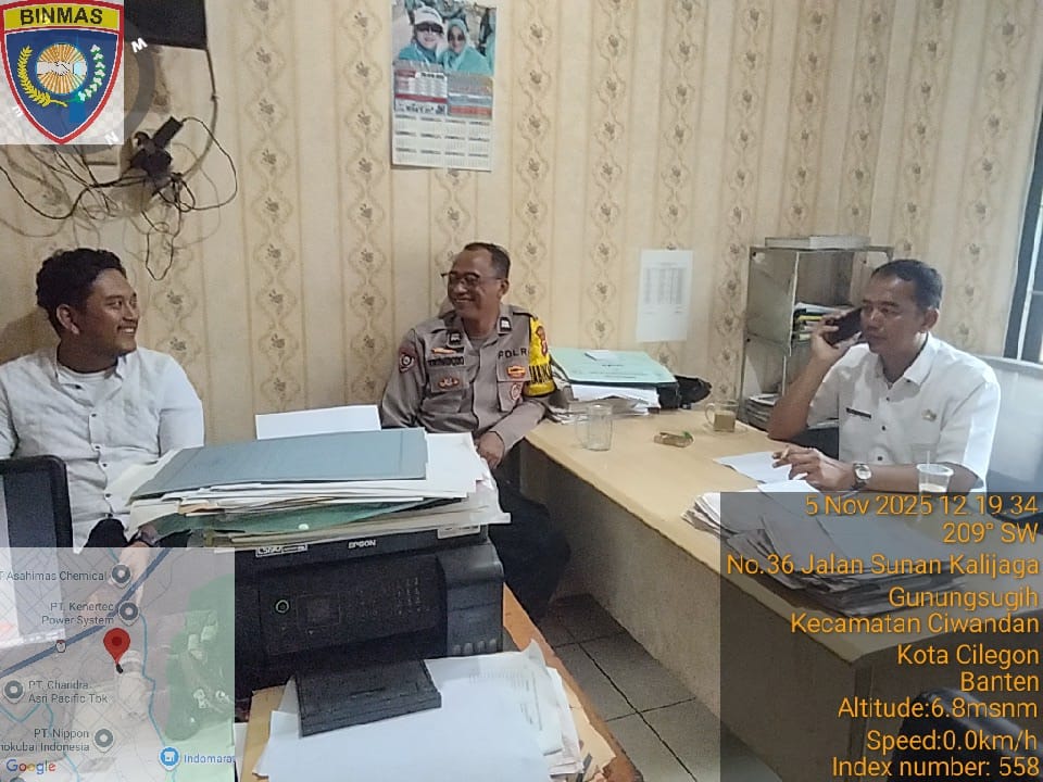Cilegon – Bhabinkamtibmas Polsek Ciwandan Polres Cilegon Polda Banten  melaksanakan kegiatan Pengayoman dan Hadir Di tengah-tengah Warga masyarakat Guna Menciptakan suasana yang nyaman, Rabu (06/11/2025).