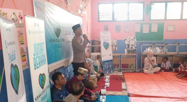 -POLRES CILEGON–Polda Banten. Kapolsek Purwakarta, Iptu Sukanda, menghadiri kegiatan Jumat Berkah yang diselenggarakan oleh Koperasi Simpan Pinjam (KSP) di SD Kubang Kutu I, Link. Ramabaru Kelurahan Kebondalem. Kegiatan ini diikuti oleh siswa-siswi SD Kubang Kutu I, kepala sekolah, pihak KSP, Kanit Binmas Ipda Surahman, dan Bhabinkamtibmas Aiptu Daryo EFendi.Jumat.(07-11-2025).